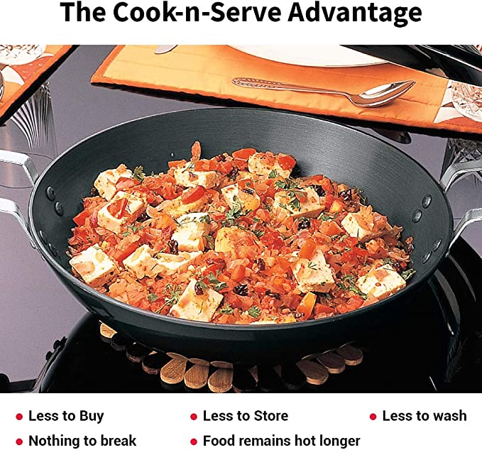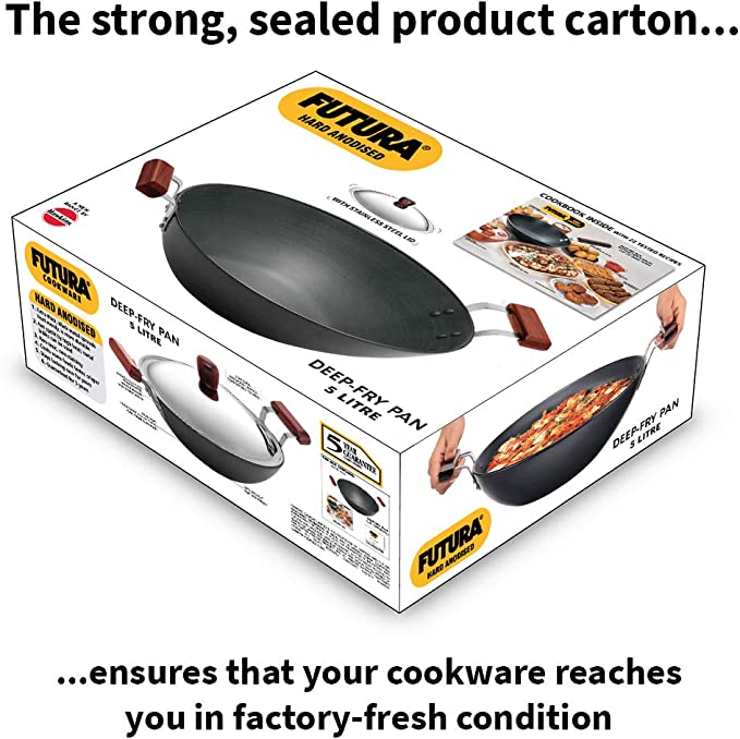 Futura Hard Anodised Flat Bottom Deep Fry Pan 5-Liter / Kadhai with Stainless Steel Lid,