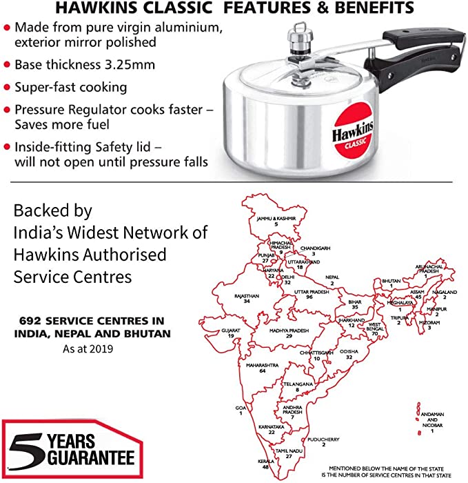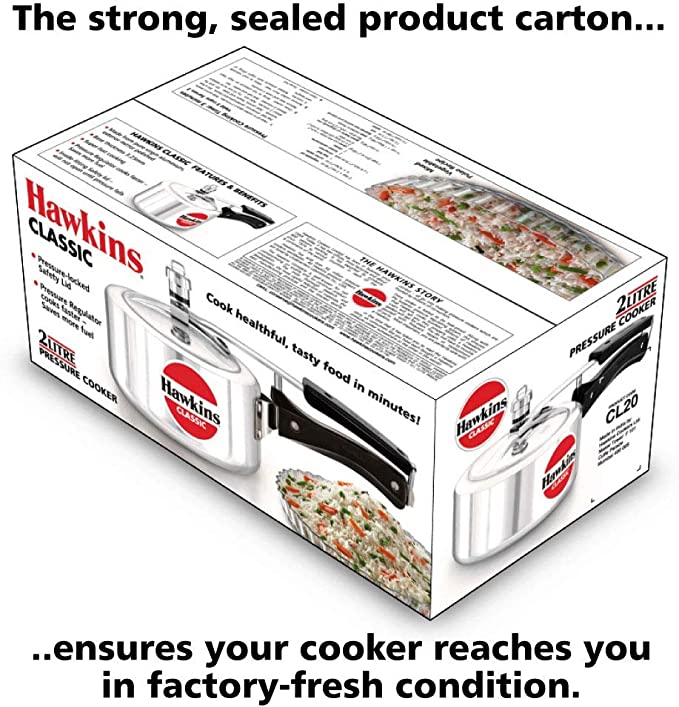 Hawkins Classic Aluminum Pressure Cooker, 2 Litre, Silver